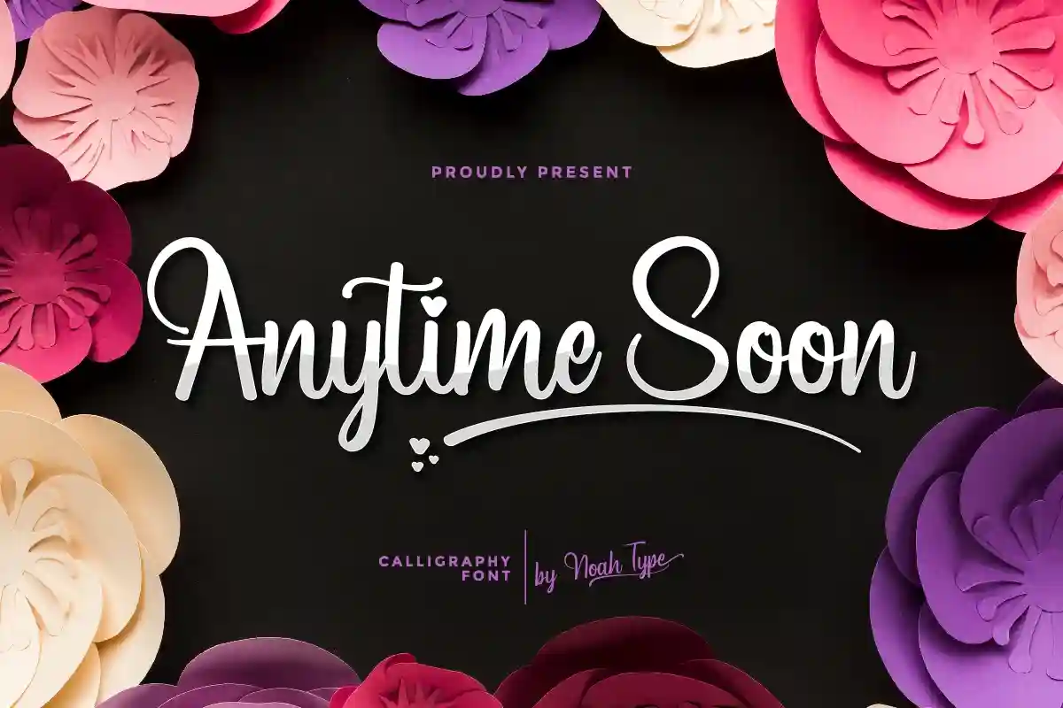 Anytime Soon Font includes includes full set of Uppercase and Lowercase Basic Characters, Numerals and Punctuation. Also it contains ligatures and alternates characters to perfectly make natural calligraphy look that add more beautiful and aesthetic fonts to perfect your extraordinary project. Anytime Soon will be awesome for wedding, engagement, branding, invitations, florist, hair stylish, makeup artist, event organizer, movie, music, festival, promotions, social media etc