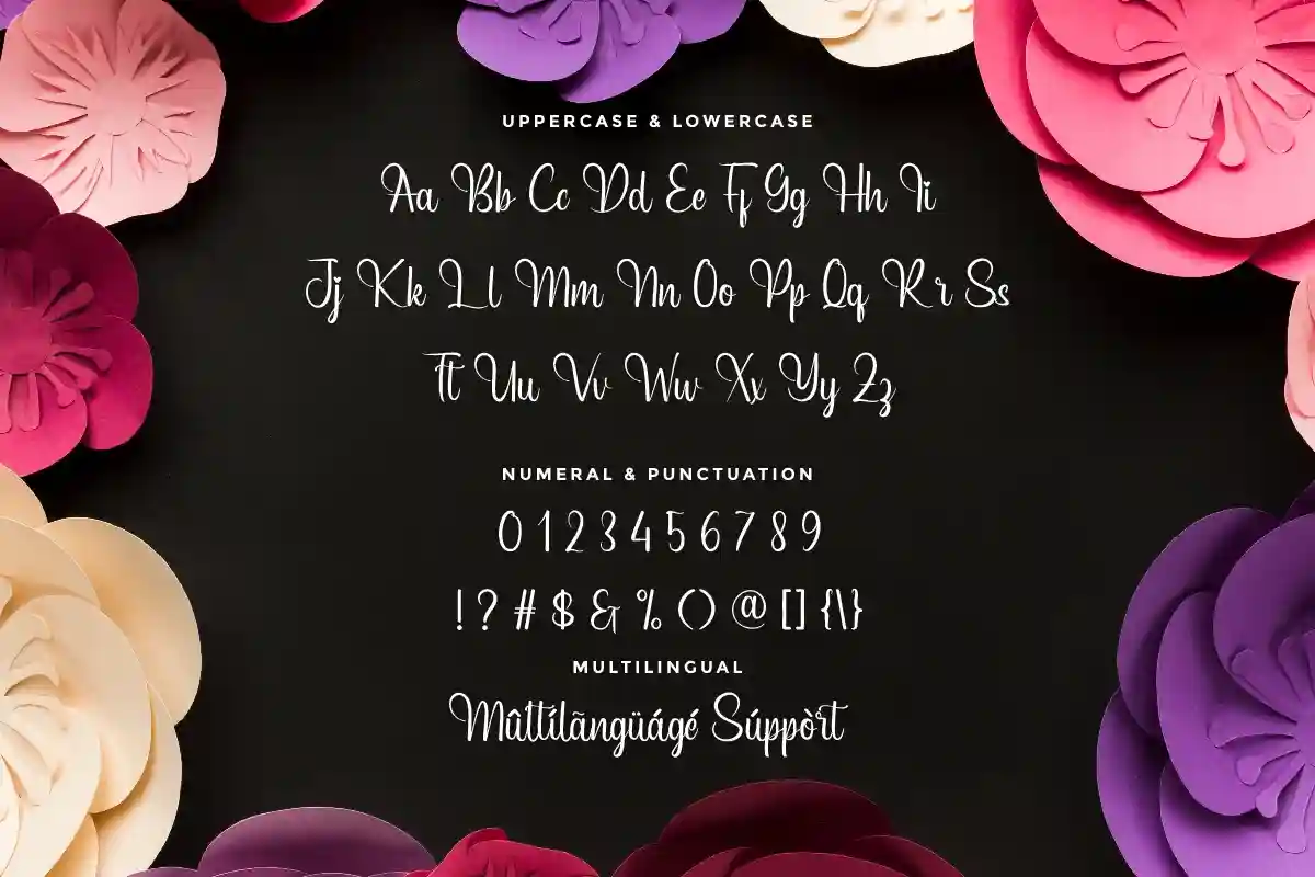 When we make this font, we really want to create a touch that is so free-flowing that it gives a natural impression on its use later. For example, if you want letter ‘s’ that has a flow sketch with letter ‘t’, you can find it in ‘st’ ligature glyph (just type in the text form below for trying). This awesome script is for anyone who are needing of elegance and stylish for their designs.