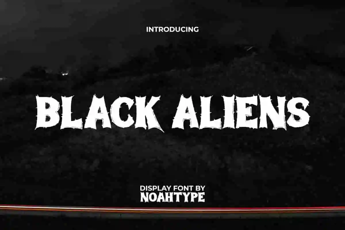 Black Aliens Font is a creepy black metal decorative font by NoahType. This font has small thorns all over the letters so it can make your blood rush when you look at it. It will be perfect for any designs, such as brand image, custom design, invitation, label, marketing material, menu, poster, printing, product packaging, quotes, signage, website, and many more!