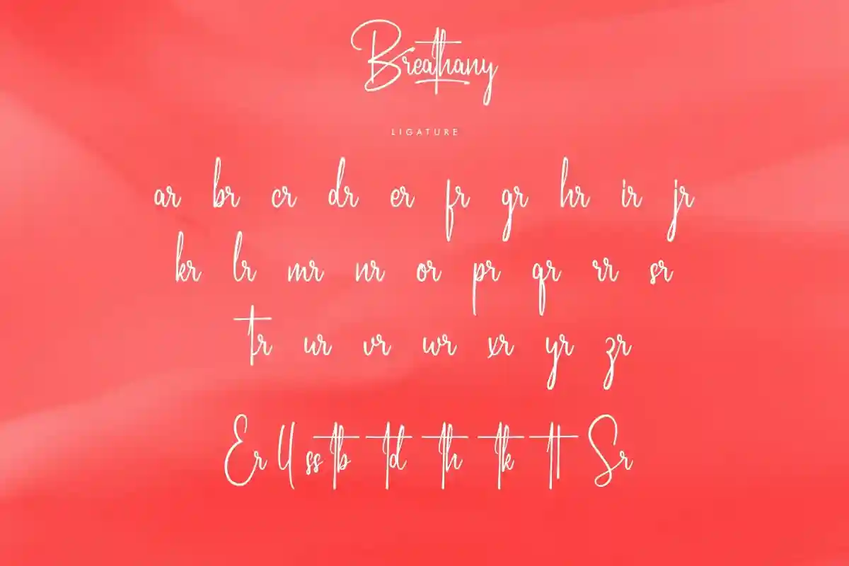 Breathany Signature Font includes includes full set of Uppercase and Lowercase Basic Characters, Numerals and Punctuation. Also it contains ligatures and alternates characters to perfectly make natural handwriting look that add more beautiful and aesthetic fonts to perfect your extraordinary project. Breathany Font will be awesome for professional, photography, wedding, engagement, branding, invitations, florist, hair stylish, makeup artist, event organizer, movie, music, festival, promotions, social media etc