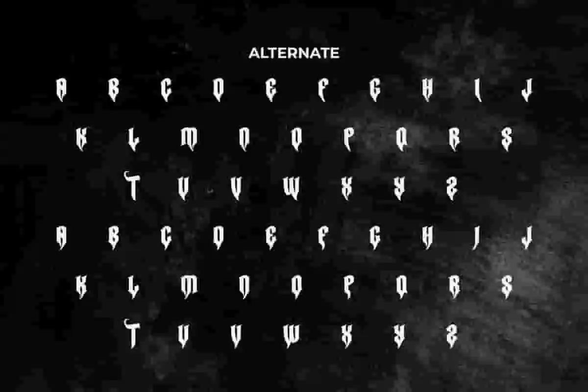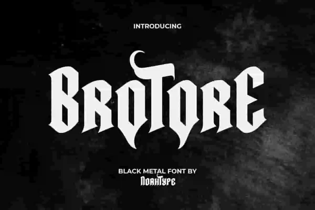 Brotore Font is a cool black metal font by NoahType. This font style implies a cool mysterious and dark impression at the same time. It will be perfect for any designs, such as custom design, brand image, poster, label, invitation, cover, marketing material, menu, printing, product packaging, quotes, signage, website, and many more!