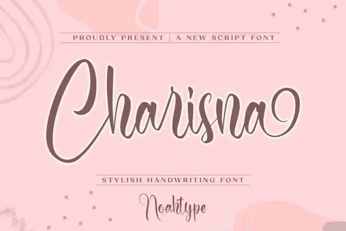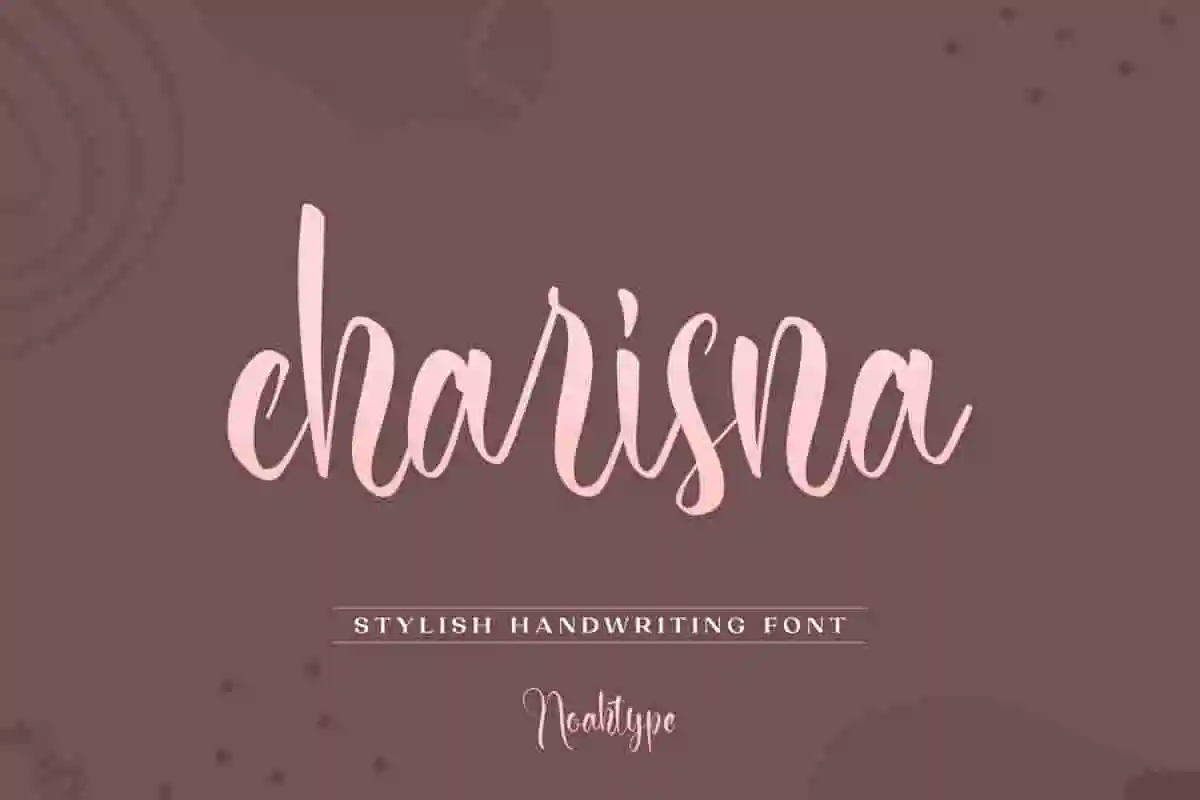 Charisna Font is a stylish handwriting font, exclusively designed by NoahType. The sheer lines flow beautifully to make any design dazzling. It will be suitable for many industries such as accessories, apparel, author, coffee shop, craft, homeware, perfume, salon and spa, wedding organizer, and more!