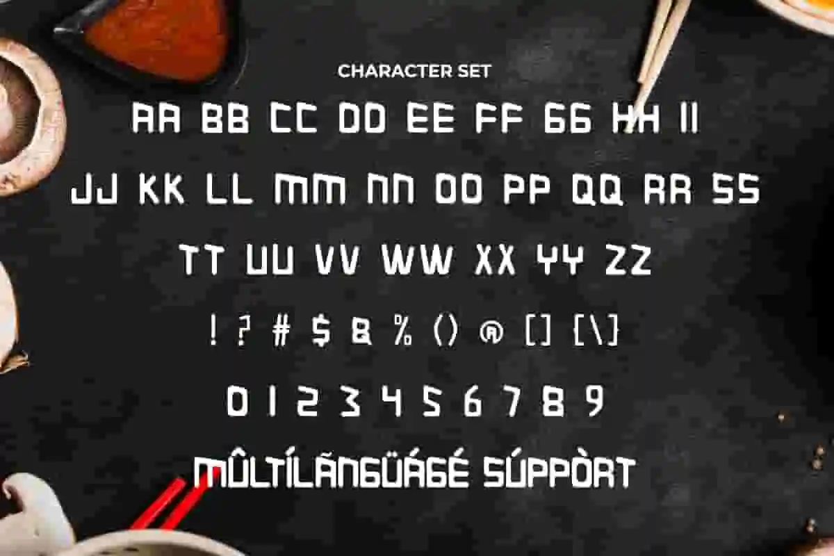 Combro Font is a uniquely bold yet stylish display font inspired from traditional foodist menu. The style of this font may be plain, but the slanted tops make it look special. It will be perfect for any projects, such as menu, label, poster, stationery, custom design, signage, invitation, brand image, cover, printing, product packaging, quotes, website, and many more!