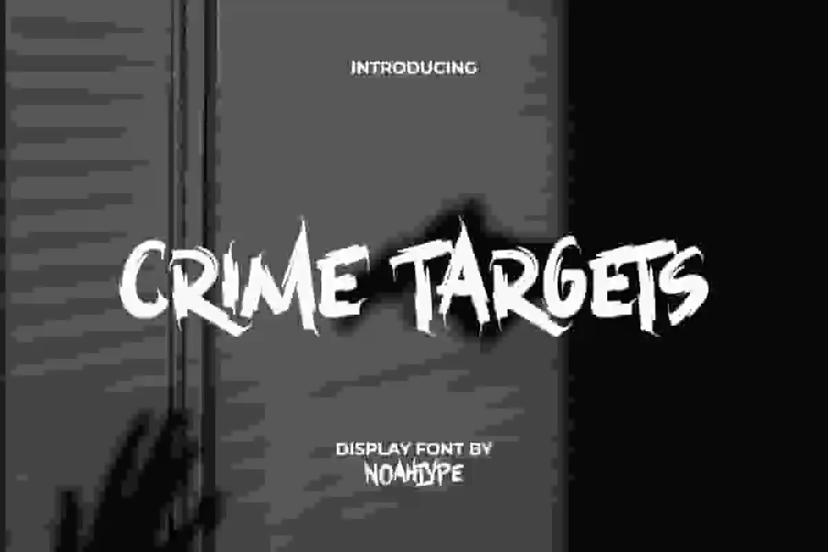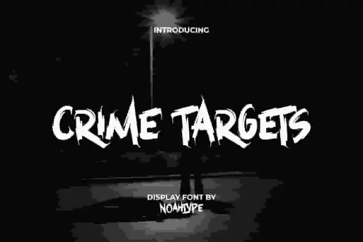 Crime Targets Font is a rough and sharp brush display font, created by NoahType. This font can support designs that carry a horror or mysterious theme by providing a perfect appearance. It will be good for any designs, such as invitation, label, marketing material, poster, brand image, cover, custom design, printing, product packaging, quotes, signage, stationery, website, and many more!