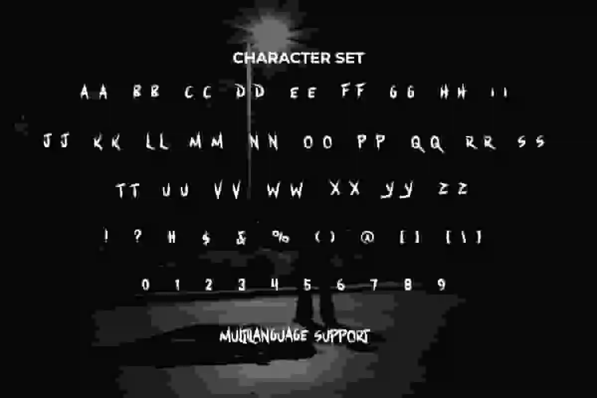 Crime Targets Font includes full set of ALL CAPS for Uppercase and Lowercase Basic Characters, Numerals, Punctuation, and Symbol. This creepy font will make your design awesome and also a perfect choice for many industries, such as fashion, accessories, advertising, event or festival, art, café, game, movie, music, printing, publishing, etc.