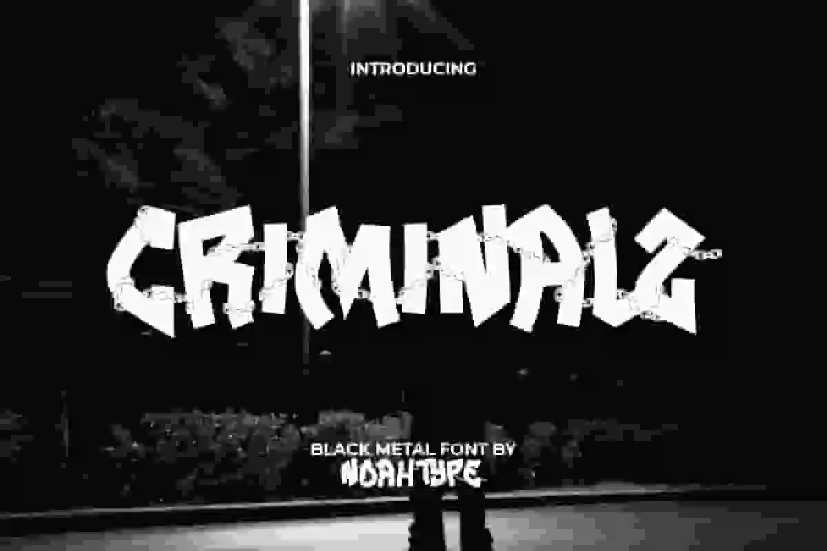 Criminalz Font is an impudent chained ornament guarded jail hard rock black metal decorative font. This font has a sharp graffiti style with the addition of small chains that surround each letter. It will be perfect for any designs, such as custom design, label, signage, poster, brand image, cover, invitation, marketing material, menu, printing, product packaging, quotes, website, and many more!