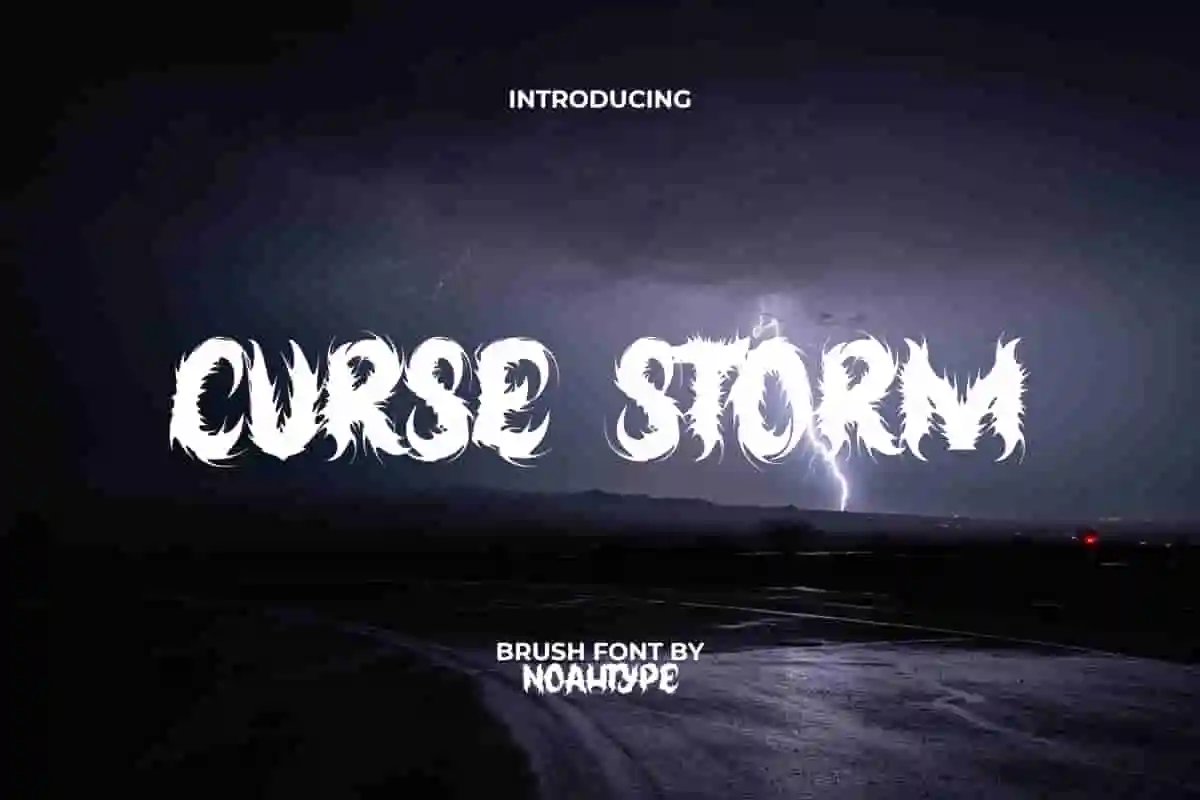 Curse Storm Font is a black metal hard core display font with horror theme made with unique brush style. The characters in this font are created by fine brush strokes that can give a scary impression and make you shiver. It will be perfect for any designs, such as brand image, cover, custom design, invitation, label, marketing material, menu, poster, printing, product packaging, quotes, signage, stationery, t-shirt screen website, and many more!