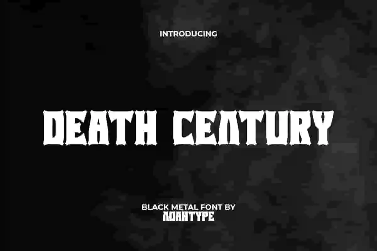 Death Century Font is a Black Metal font with a little touch of royal theme by NoahType. This font is suitable for use in film, animation, or game because it has a strong and amazing character. It will be perfect for any designs, such as custom design, brand image, poster, label, invitation, cover, marketing material, menu, printing, product packaging, quotes, signage, website, and many more!