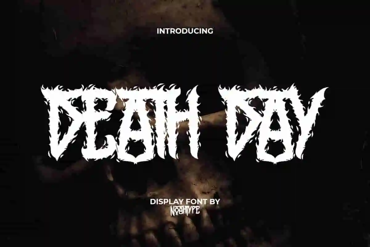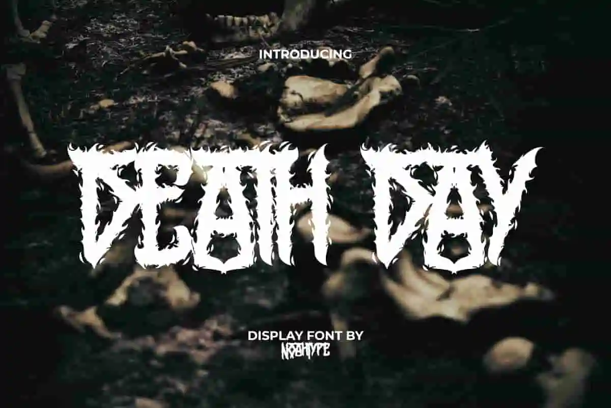 Death Day Font is a dreadful hardcore black metal font with rock scary style by NoahType. This font can give a strong impression of death so that your design looks scary and impressive. It will be perfect for any designs, such as brand image, custom design, invitation, label, marketing material, menu, poster, printing, product packaging, quotes, signage, website, and many more!