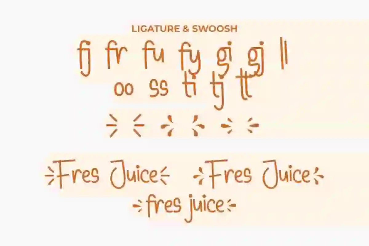 Fresh Juice Font includes full set of Uppercase and Lowercase Basic Characters, Numerals and Punctuation. This font also has additional characters that will blow your mind