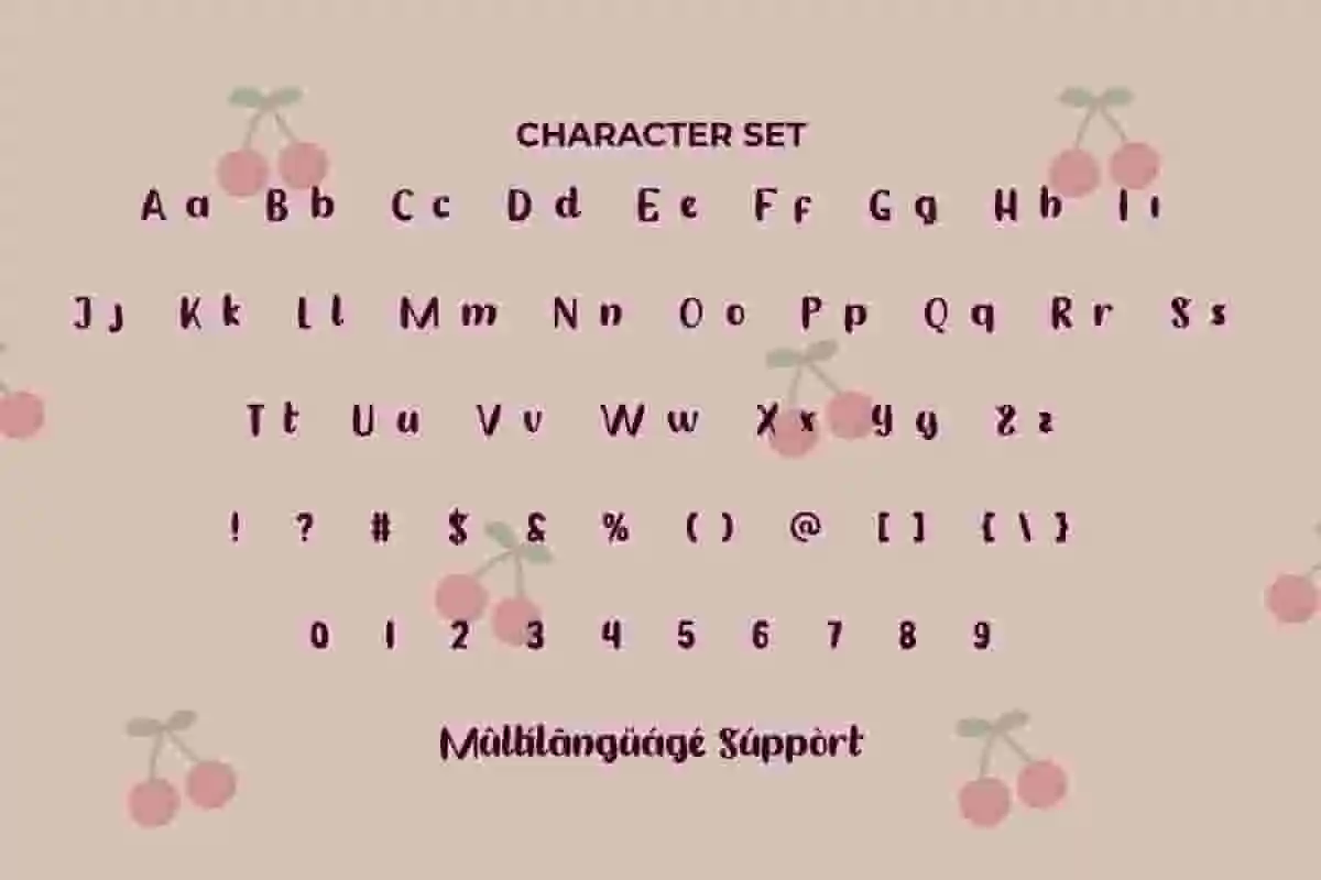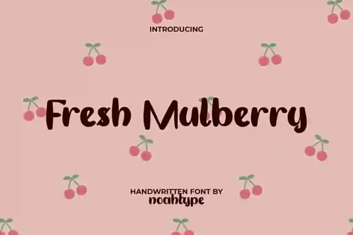 Fresh Mulberry Font includes full set of Uppercase and Lowercase Basic Characters, Numerals, Punctuation, and Symbol. Inspired by the unique shape of the mulberry expressed in written form, also a perfect choice for many industries, such as advertisement, bakery and pastry, beauty product, event or festival, fashion, kids stuff, printing, publishing, toys, etc.