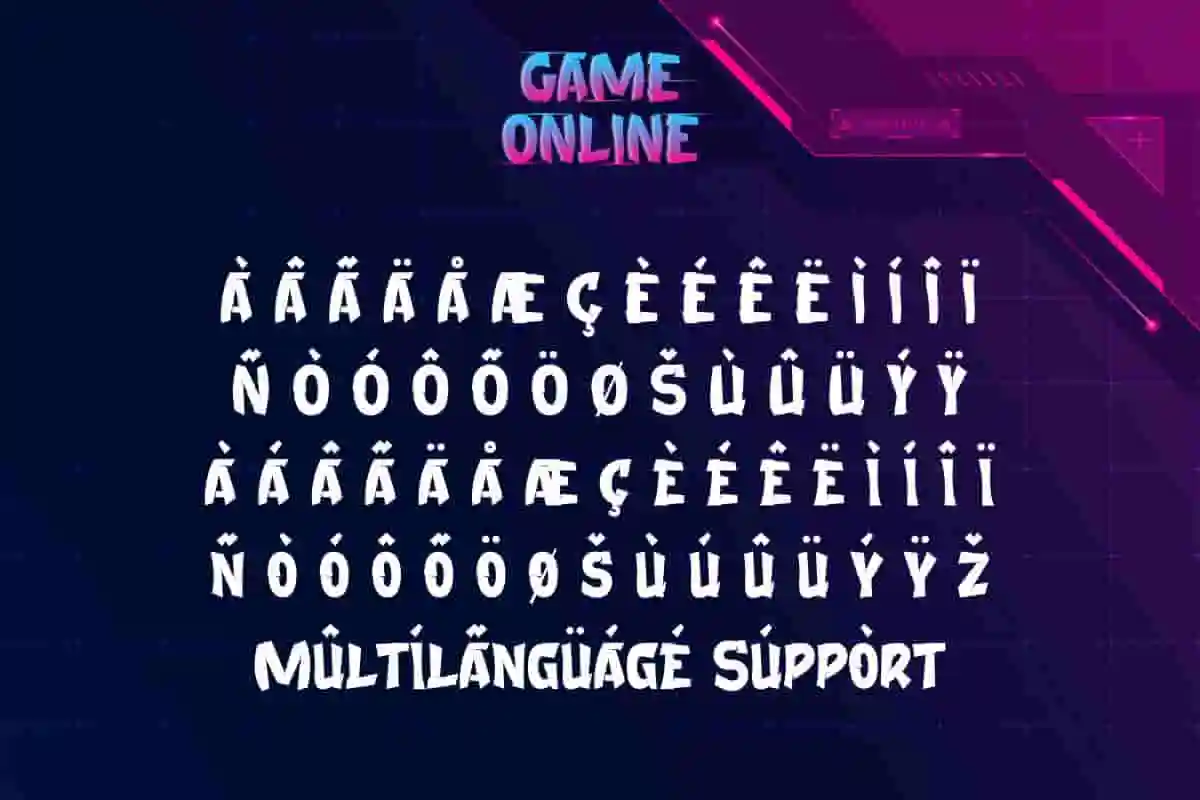 Game Online Font supports multilingual languages (including multiple currency symbols). With a simple installation, it will be ready to use both on Windows machine or Mac. It really common in almost any software (Character Map for Windows and Font Book for Mac). It work well on Adobe software such as Illustrator, Photoshop and several other software.