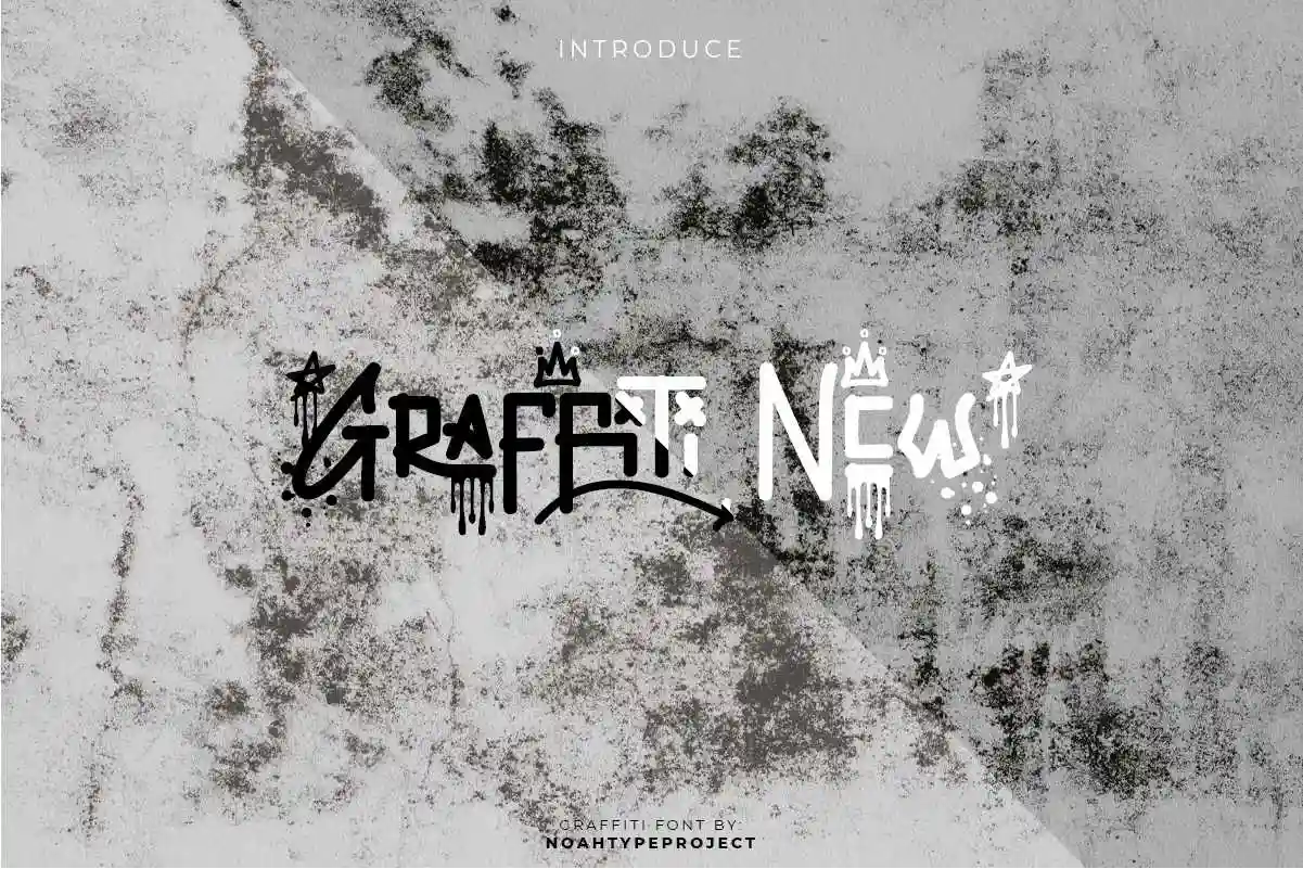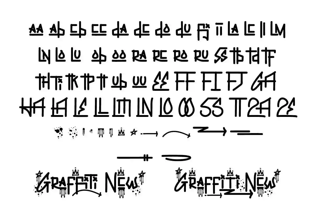 Graffiti New is a sans serif display font with mural street graffiti style. The font was inspired by mural street arts and classic artwork. It has a unique artistic graffiti style that will bring the authentic effect to the design. It will also works for games, band cover, horror, mysterious and any related things. Graffiti New Font includes full set of Uppercase and Lowercase Basic Characters, Numerals and Punctuation. Also it contains ligatures to make it awesome. You can also combine two or more styles on the text like we did on the cover, so you will great even more unique and special font. The font is perfect for many projects, headlines, logos, poster, tittle, products, etc