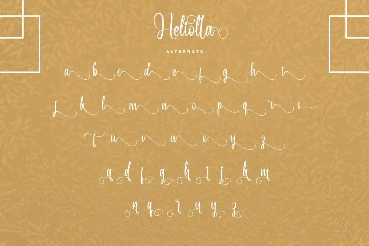 Heliolla Font includes includes full set of Uppercase and Lowercase Basic Characters, Numerals and Punctuation. Also it contains ligatures and alternates characters to perfectly make natural calligraphy look that add more beautiful and aesthetic fonts to perfect your extraordinary project. Heliolla will be awesome for wedding, engagement, branding, invitations, florist, hair stylish, makeup artist, event organizer, movie, music, festival, promotions, social media et