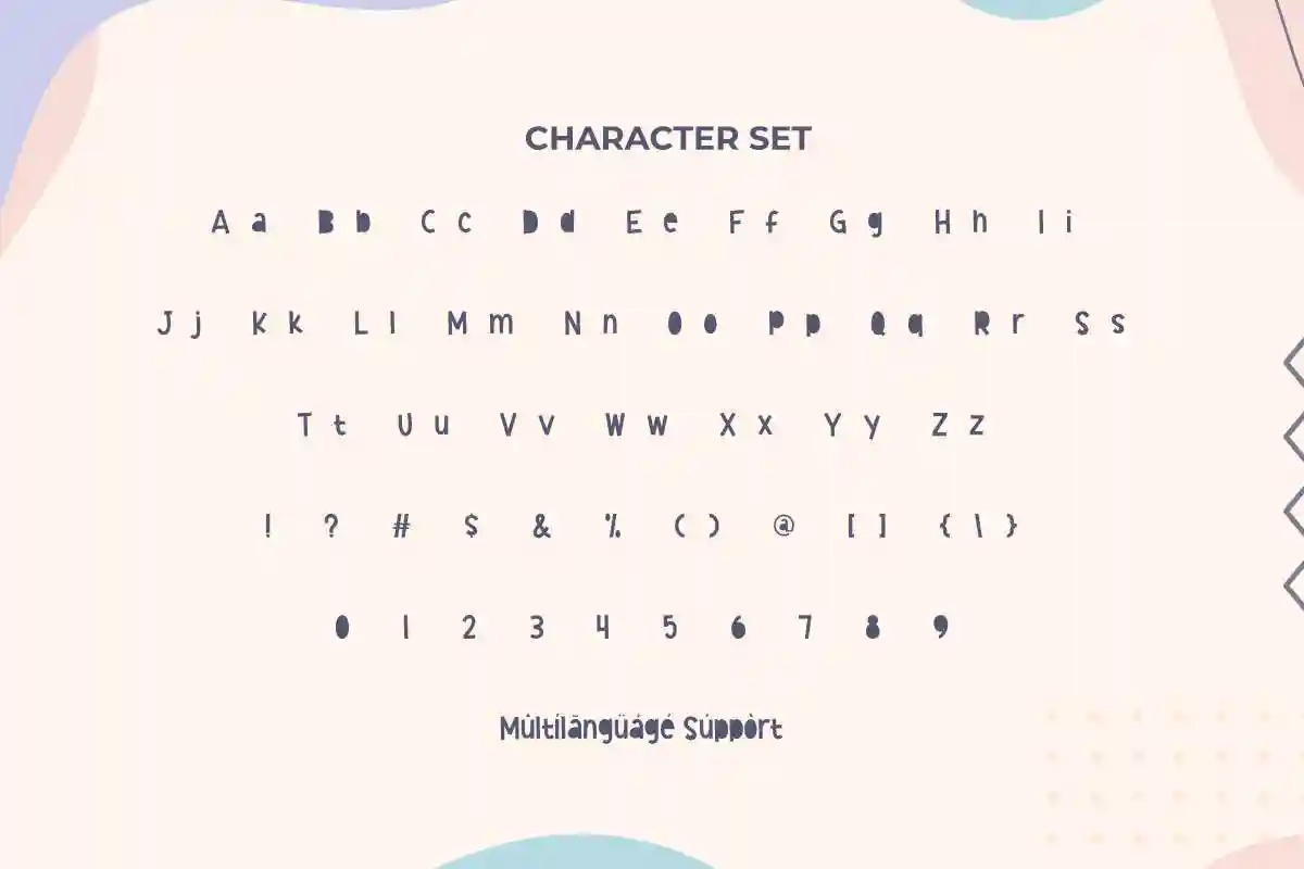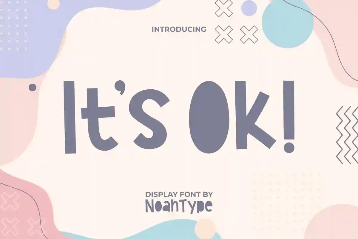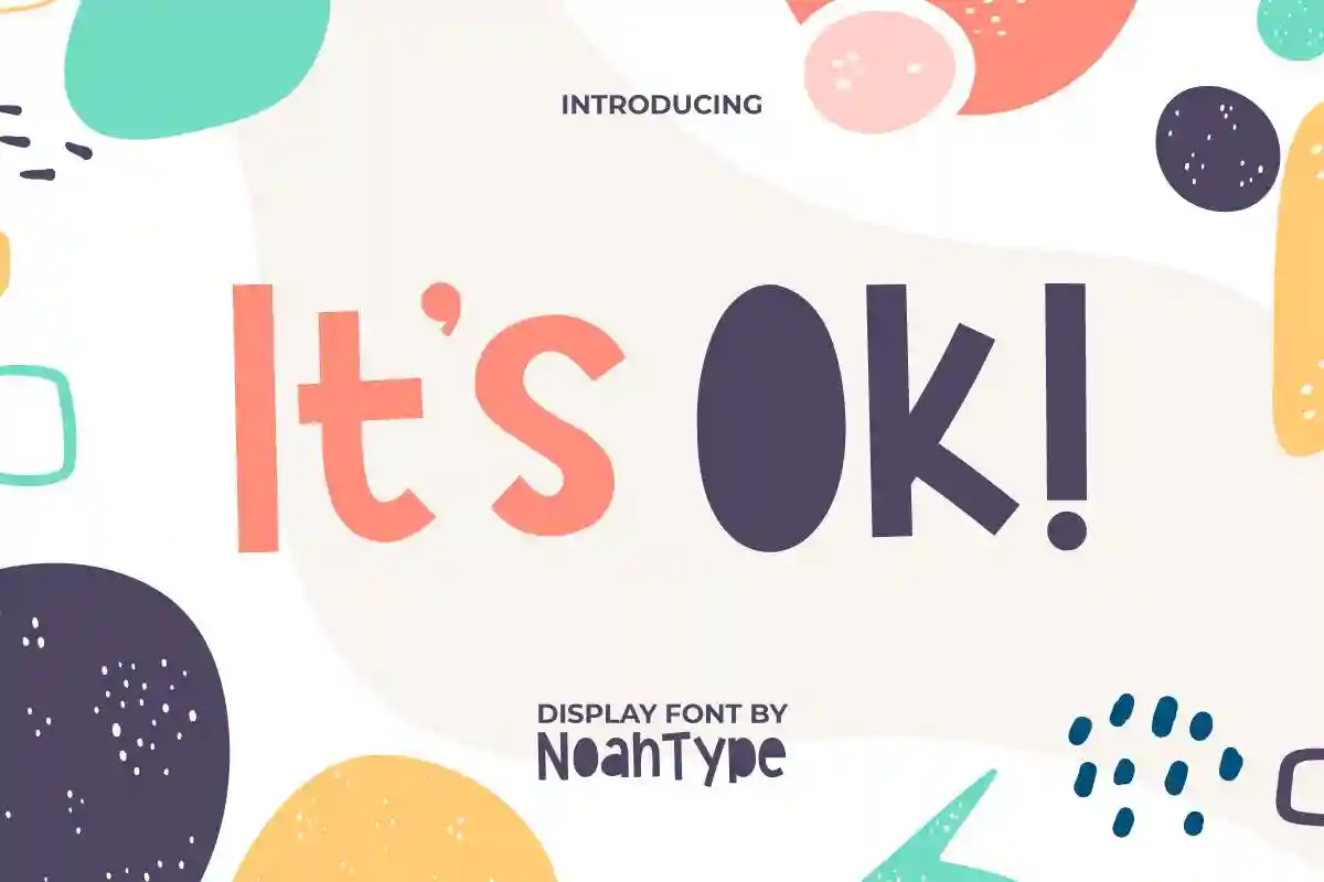It’s Ok Font is a cute and playful display font with fun theme. This font doesn’t have lines that are too thick or thin and each rounded letter is filled with color to add a cute impression. It will be good for any designs, such as brand image, business card, cover, custom design, invitation, label, menu, poster, product packaging, quote, signage, stationery, web, and more!