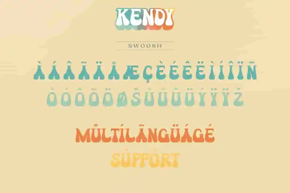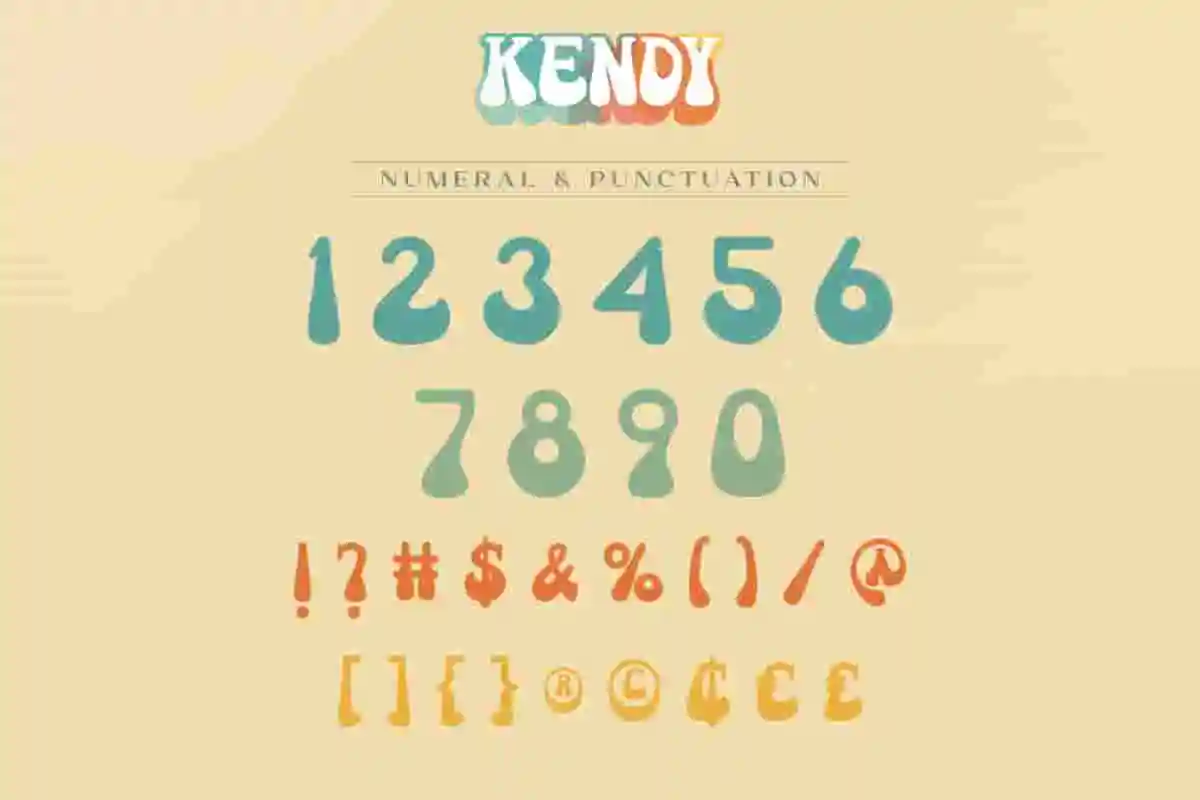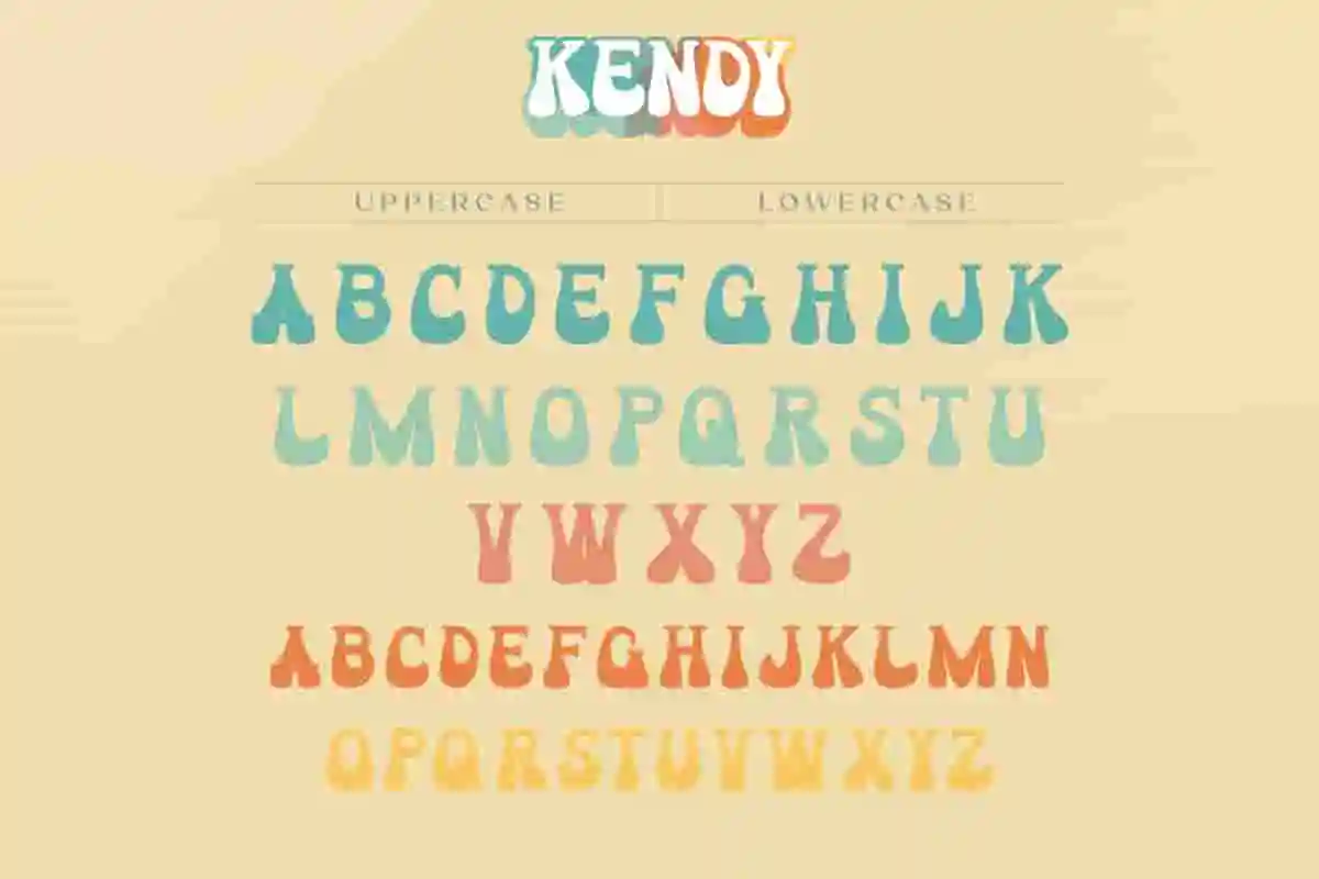 Kendy Font is a groovy display font. This font is inspired by the modern groovy style. The font has a bold, funny dan unique style with a clean look that will bring an exclusive font to the design. It will also work for businesses or companies such as, fashion, food and beverage, games, retails, school, signs, writers etc.