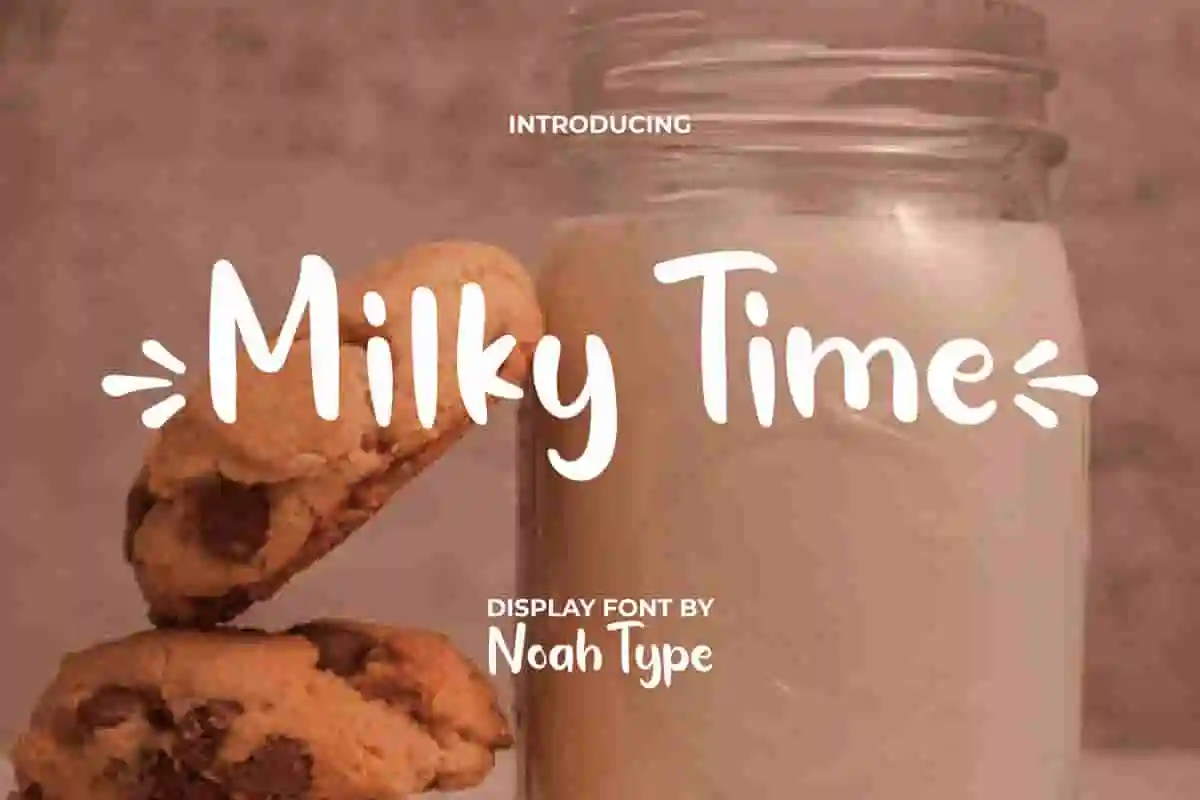 Milky Time Font is a fun handwriting display font, created by NoahType. This adorable font will let you use it in many designs that need a cute look. It will be suitable for any industries, such as advertisement, bakery and pastry, café, event or festival, fashion, food and beverage, furniture, printing, publishing, and more!