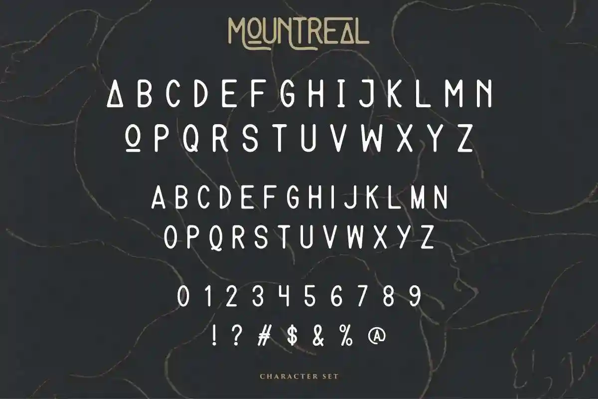 Mountreal is a classic sans serif display font with awesome style. The font was inspired from vintage classic lettering. It has a unique style that will bring the special effect to the design. It will works for wedding, branding, artist, make up, and any other things. Mountreal includes full set of Uppercase and Lowercase Basic Characters, Numerals and Punctuation. The font will also works for outdoor, fashion products, camping, adventure style. The font is perfect for many projects, headlines, logos, poster, tittle, products, etc