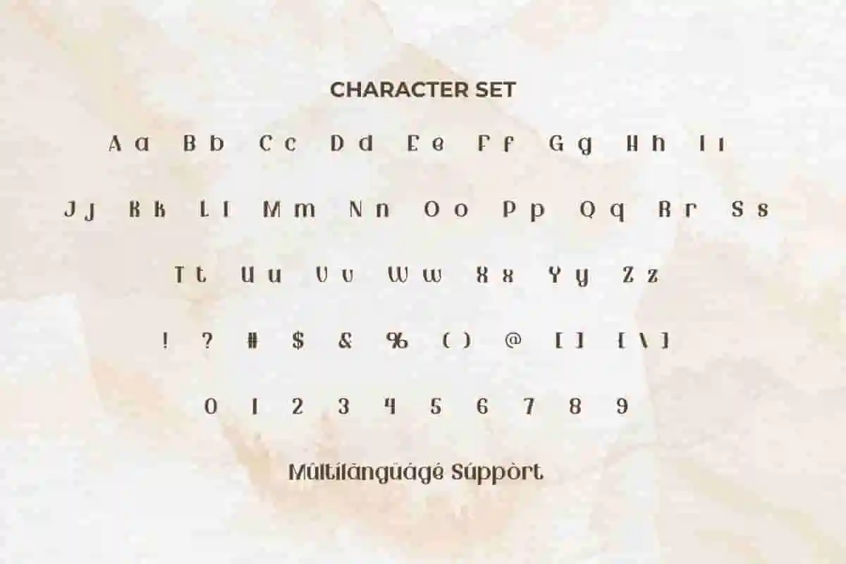 Mourela Font includes full set of Uppercase and Lowercase Basic Characters, Numerals, Punctuation, and Symbol. This font has beautiful characters and will be perfect choice for many industries, such as advertising, beauty product, cafe, fashion, home furniture, jewelry and accessories, perfume, printing, publishing, restaurant, etc.