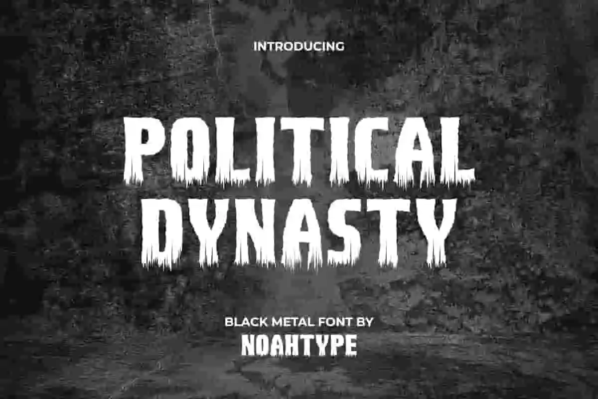 Political Dynasty Font is a mysterious unique decorated Black Metal font by NoahType. This font has a strong character with the bottom of the character like scratches, leaving a scary impression. It will be perfect for any designs, such as custom design, brand image, poster, label, invitation, cover, marketing material, menu, printing, product packaging, quotes, signage, website, and many more!