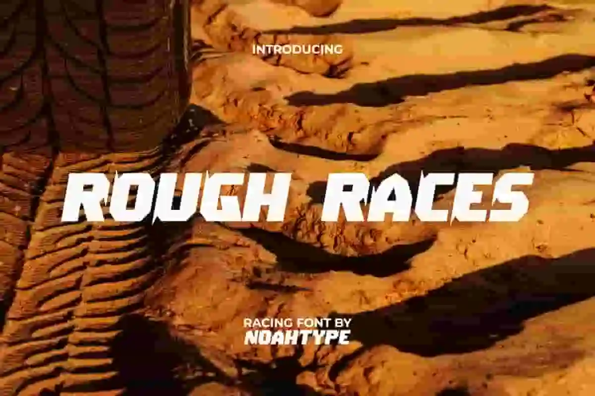 Rough Races Font is a stylish modern racing display font with strong created by NoahType. This font has clear legibility with bold characters with the addition of sharp thin lines on the side. It will be perfect for any designs, such as brand image, cover, custom design, invitation, label, menu, poster, printing, product packaging, quotes, signage, stationery, website, and many more!