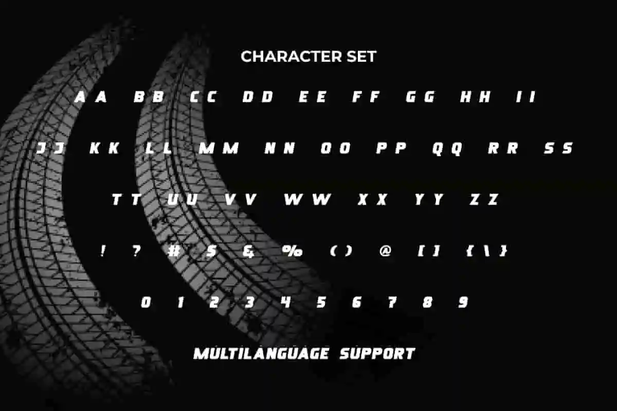 Rushroad Font includes full set of ALL CAPS for Uppercase and Lowercase Basic Characters, Numerals, Punctuation, Symbol and Alternate character. This modern font will make your design standout and also a perfect choice for many industries, such as automotive, sports, game, racing, fashion, movie, accessories, advertising, art, café, event or festival, printing, publishing, etc.