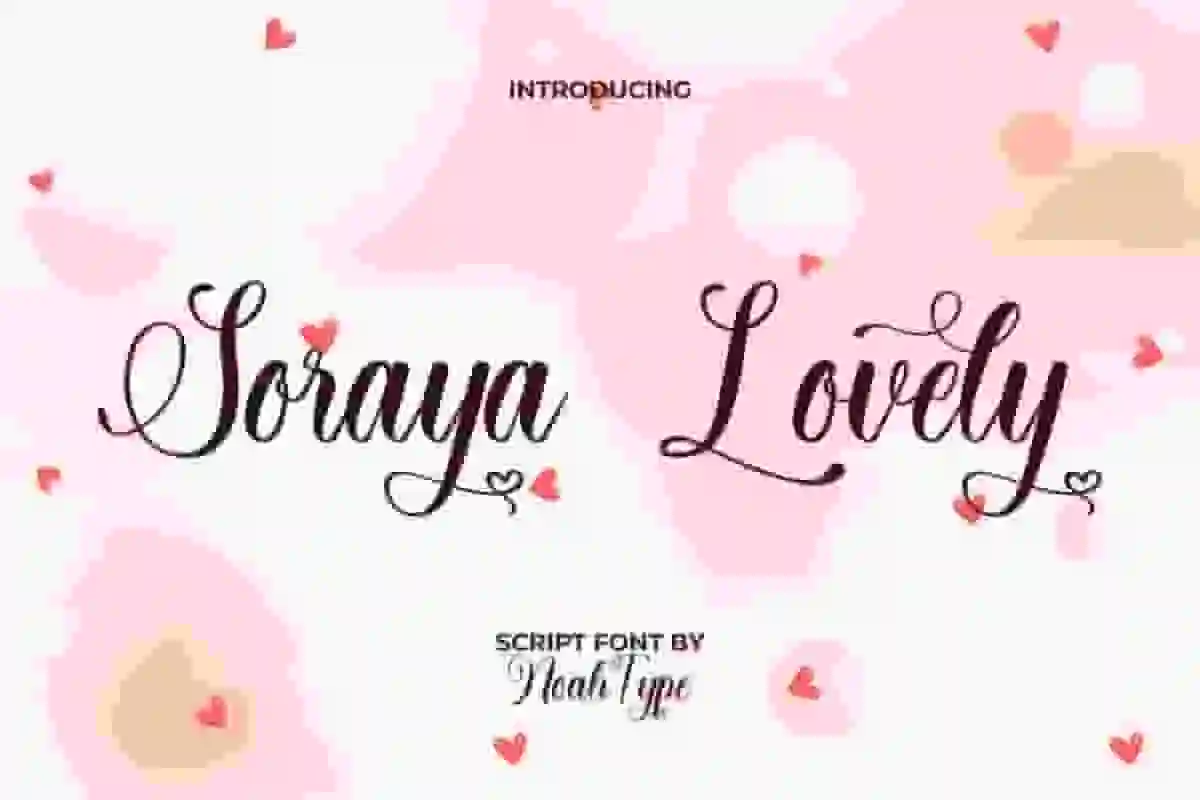 Soraya Lovely Font is a romantic calligraphy script font with lovely elegant shape, created by NoahType. This font is made with a lot of heart so that it can show perfection in every design you make, such as invitation, labels, magazine catalog, product packaging, quotes, signage, stationery, title, website, and more!