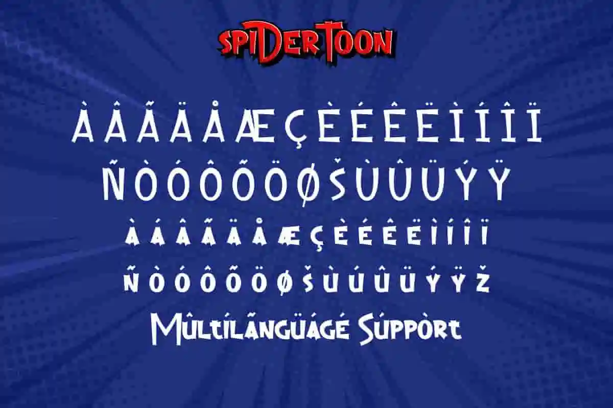 Spider Toon Font supports multilingual languages (including multiple currency symbols) with a simple installation, also have alternate characters options that you can select and use to make it standout. The font will be ready to use both on Windows machine or Mac. It work well on Adobe software such as Illustrator, Photoshop and several other software.