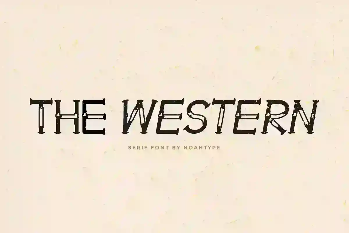 The Western is a casual serif vintage font inspired from American Sherriff Era. The font has a unique style that will bring the authentic excusive touch to the design. It will also works for restaurant, movies, songs, food and drinks etc