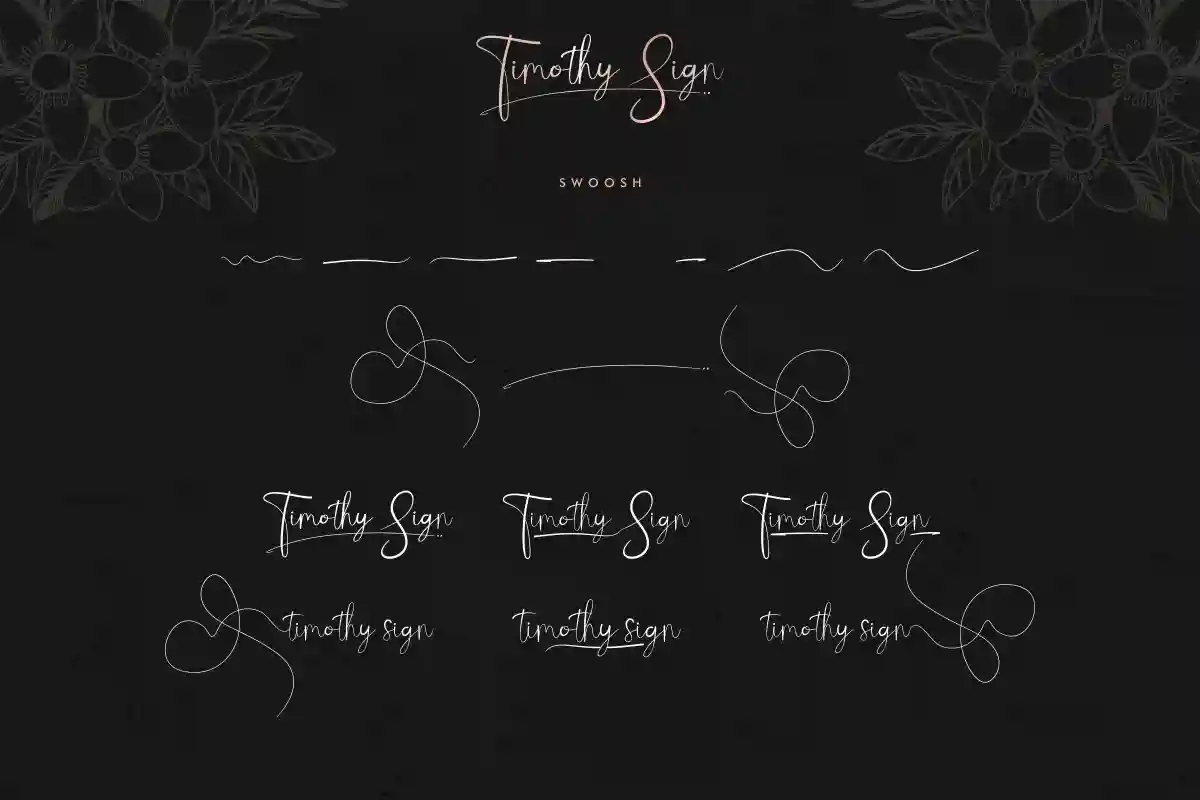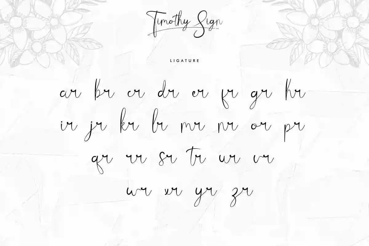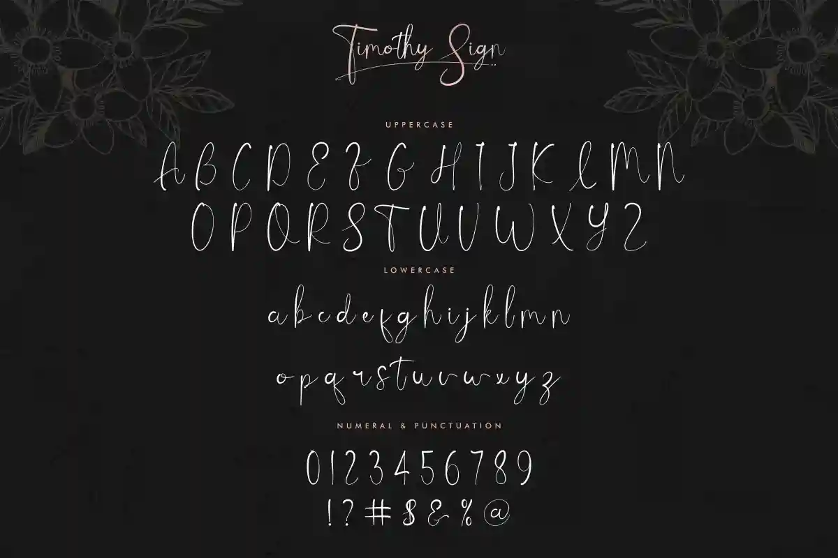 Timothy Sign Font includes includes full set of Uppercase and Lowercase Basic Characters, Numerals and Punctuation. Also it contains ligatures and alternates characters to perfectly make natural handwriting look that add more beautiful and aesthetic fonts to perfect your extraordinary project. Timothy Sign Font will be awesome for professional, photography, wedding, engagement, branding, invitations, florist, hair stylish, makeup artist, event organizer, movie, music, festival, promotions, social media etc