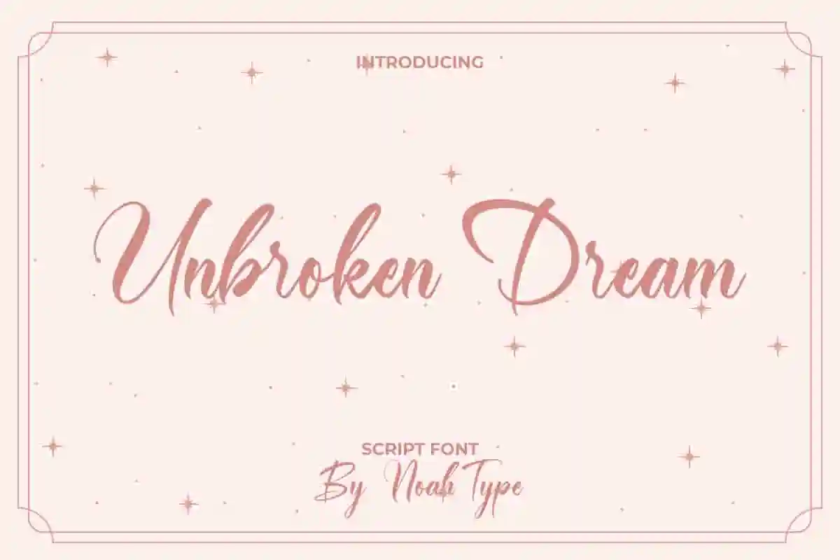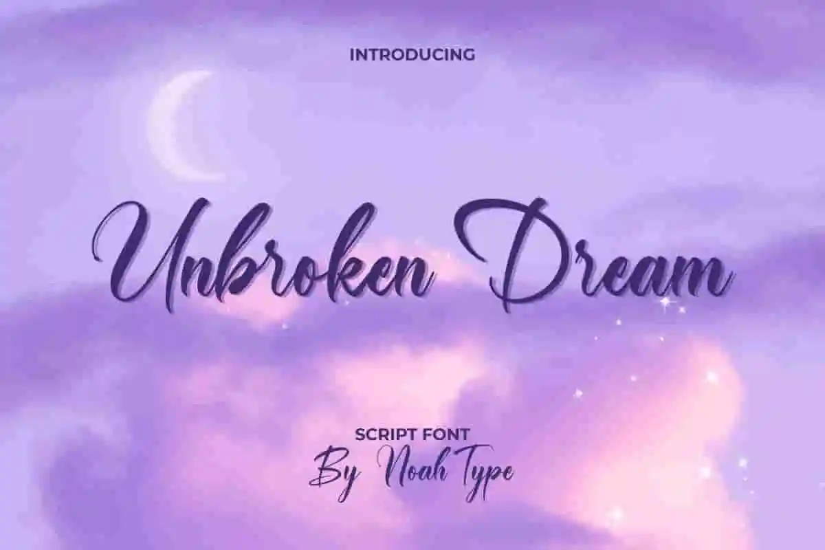 Unbroken Dream Font is a modern stunning brush font with calligraphy style designed and made by NoahType. This font is made of cursive lines which looks good for a stylish design, such as business card, calendar, custom design, invitation, label, magazine catalog, menu, poster, product packaging, quote, title, website, and more!