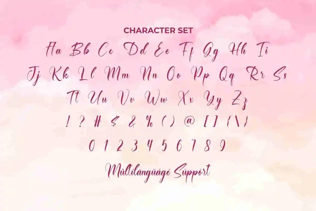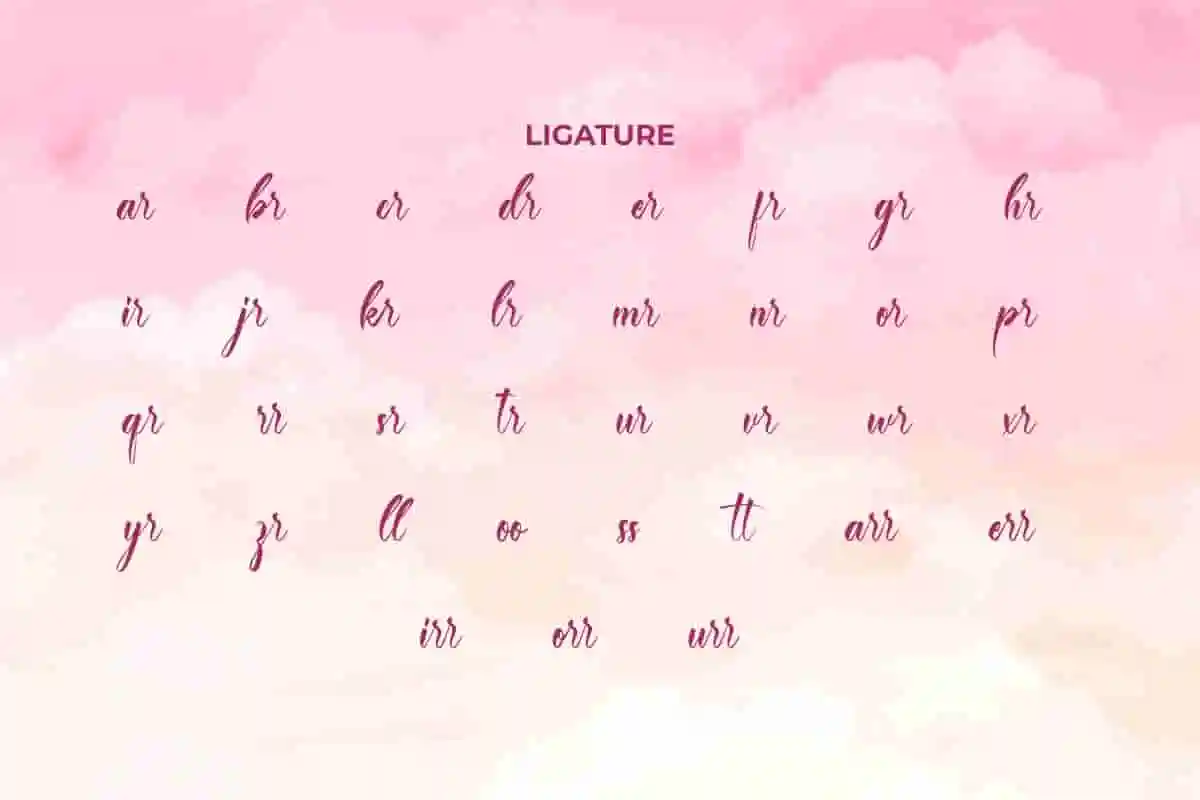 Unbroken Dream Font includes full set of Uppercase and Lowercase Basic Characters, Numerals, and Punctuation. It also contain Ligature characters that will add perfection and making it suitable for many industries, such as cosmetic, fashion, florist, furniture, interior design, perfume, restaurant, skincare, spa and salon, wedding or event organizer, etc.