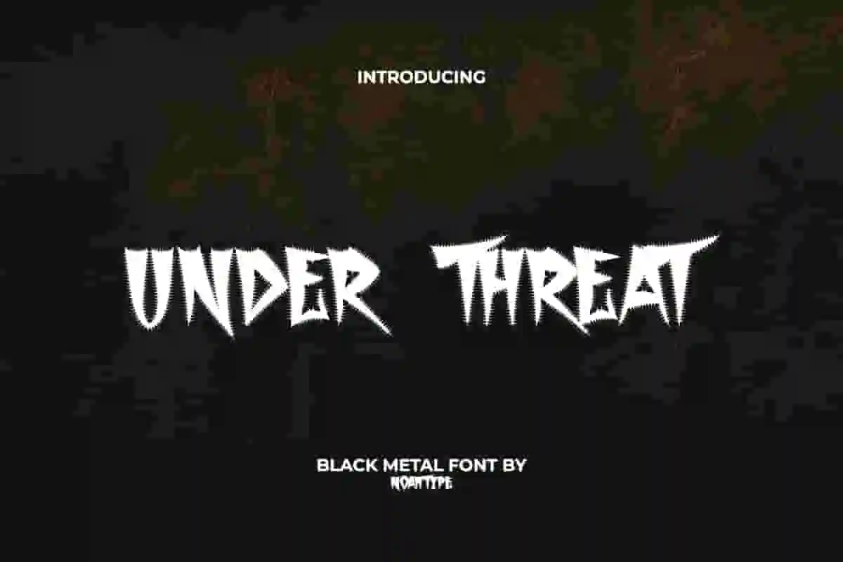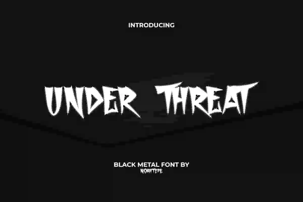 Under Threat Font is a hardcore horror black letter Black Metal font by NoahType. This font has a scary look with small spikes along the sides of the letters giving it a savage look. It will be awesome for any designs, such as custom design, brand image, poster, label, invitation, cover, marketing material, menu, printing, product packaging, quotes, signage, website, and many more!