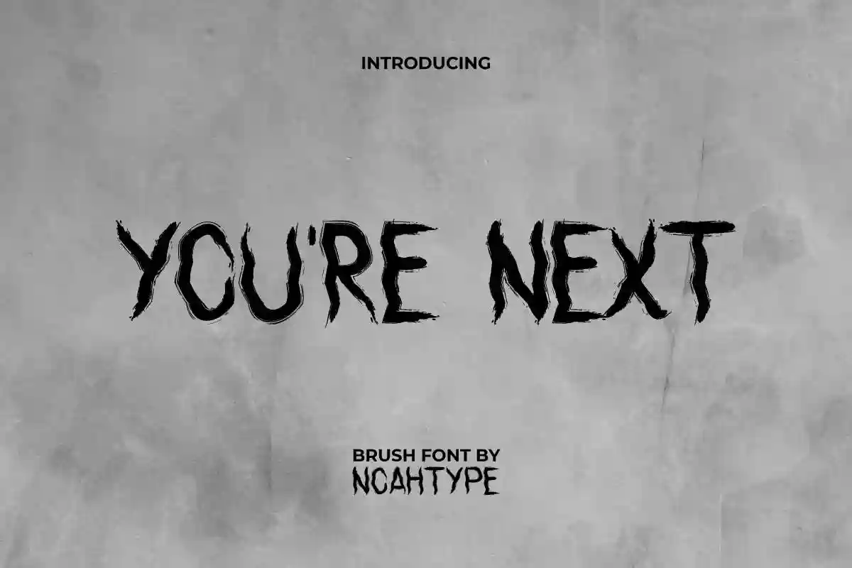 You’re Next Font is a horror creepy brush writing font. Any text that uses this font will have a creepy impression that will be etched in anyone’s memory. This brush font is for anyone who are needing of horror look. This brush font will be awesome for accessories, design graphic, fashion, game, magazine, movie, music, photography, writer, and more!